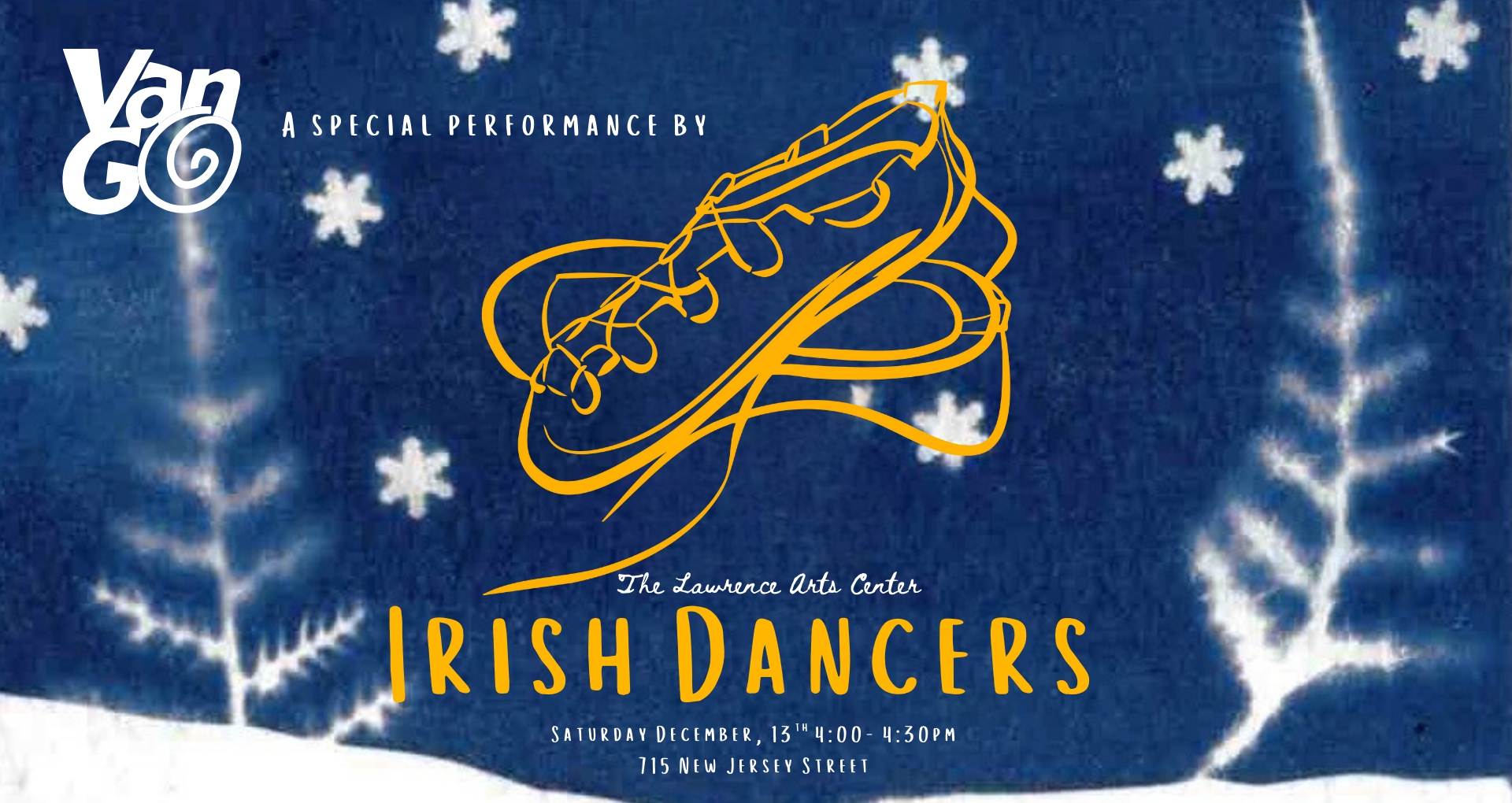 Join us at Van Go for a special winter performance by the Lawrence Arts Center Irish Dancers. This 30-minute hard shoe and soft shoe performance will take place on Van Go’s art floor and seating will be available. Free and open to the public!